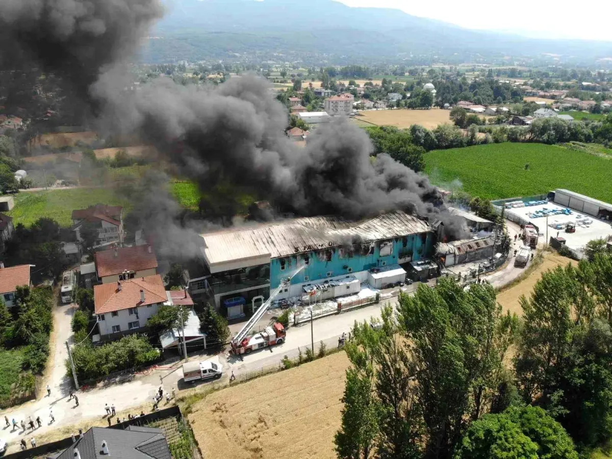 Bolu’da medikal eserler üreten fabrikada çıkan ve etraftaki meskenleri de tehdit eden yangına müdahale sürüyor.