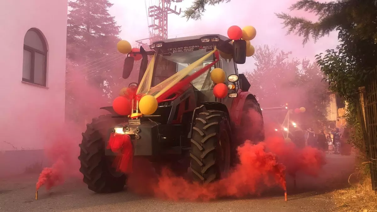 Konuralp Mahallesi’nde çeltik üreticiliği yapan Orhan- Büşra Aktepe çifti, 5 yaşındaki çocukları Yetenekli için sünnet mevlidi düzenledi. Çiftçi aile, traktörlerini de süsleyerek sünnet aracı yaptı. Köylüler de traktörlerini süsleyerek sünnete katılarak konvoy halinde dolaştılar. Sünnetin yapılacağı salona gelen traktör sis bombaları eşliğinde karşılandı.