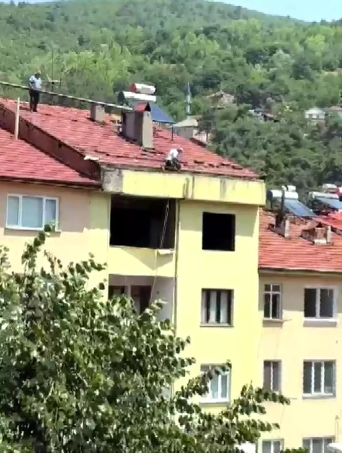 Karabük’ün Yenice ilçesinde 5 katlı bir binanın çatısında güvenlik tedbiri almadan çalışan personeller yürekleri ağza getirdi. Tehlikeye aldırış etmeyen emekçilerin o anları cep telefonuyla kaydedildi.